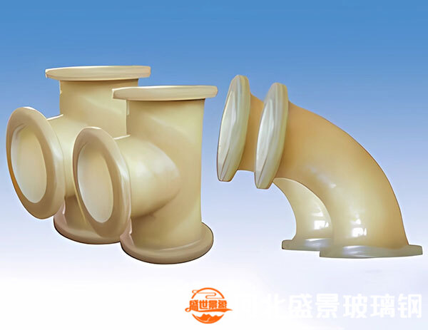 河北盛景玻璃鋼有限公司生產制作的玻璃鋼管件,包括彎頭、法蘭、三通及變徑等,管件具有以下特點: